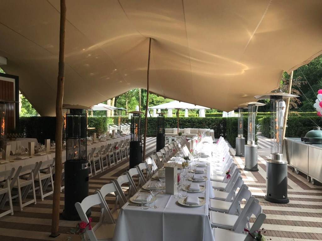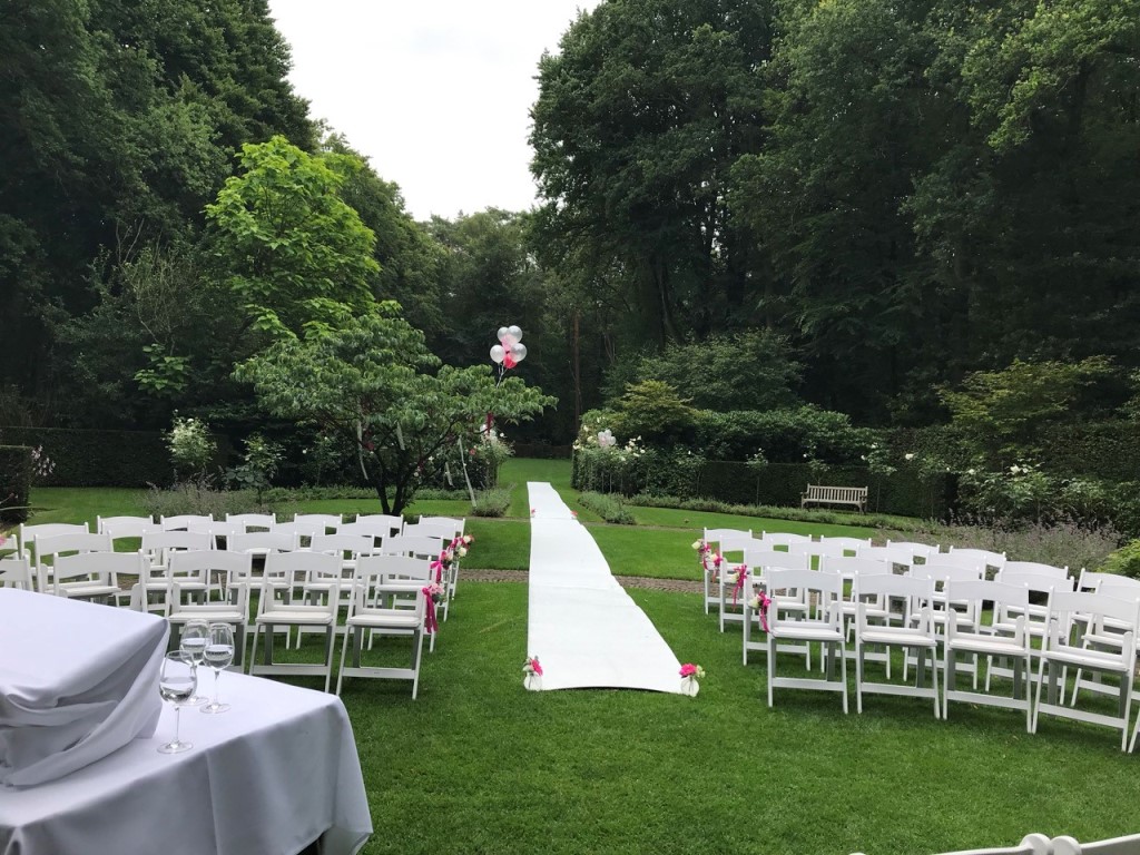 Ons eerste stuk was de Canon van Pachelbel om de gasten vanuit de Rozentuin al spelend welkom te heten op het terras. Als laatste kwam het bruidspaar eraan. Een mooi idee van het bruidspaar zelf dat soepel doorging in het sabreren.